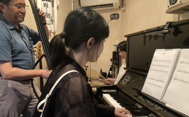 ステージに向けて作り込むJazzPianoLiveとは趣の違うセッションという場。極端に少ない決まり事の中から生まれるその時々の瞬間的な音が面白さですが、あくまでも練習の場ですから音を外したり緊張したりしたその全てがこの場でしか味わえない大切な経験です。即興演奏という単語は無からの創造を連想させますが、決してコードで適当に弾く訳ではないということを実感できるとその先にあるステップが見えてきますね。今回も白鍵だけで弾けるセッション用オリジナル曲「ROYSEE」を中心にスタンダードナンバーを演奏しましたが、ジャズは個々のレベルに応じて演奏することができますので楽しみながらすこしずつその枠を広げていきましょう。